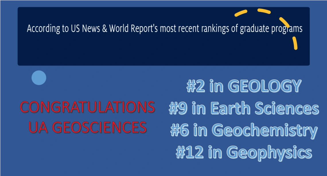 Join Department Head prof. Barbara Carrapa in Congratulating the Department of Geosciences on the high marks in today’s US News Best Graduate Schools rankings –